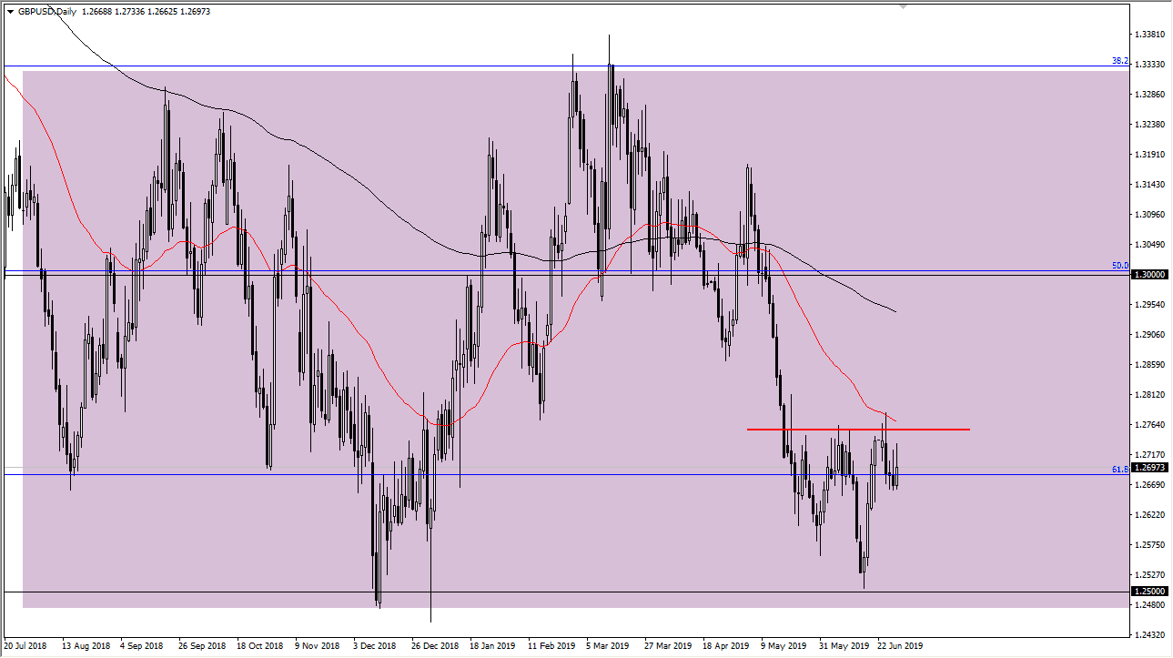 The British pound initially tried to rally during the trading session but gave back quite a bit of the gains on Friday. At this point, it looks as if the 1.2750 level is significant resistance that extends to the 1.28 level. If we can break above there, then it’s likely that the market could go much higher. At this point, I think that we will continue to try to grind above there, but it’s going to take a bit of inertia to finally make that move. In the short term, expect small pullbacks but this pullback should be buying opportunities unless we break down below the 1.26 handle. If we break down below there it’s likely that we go looking towards the 1.25 level. With the Federal Reserve looking to cut interest rates, it’s likely that the British pound could be a beneficiary although it will more than likely lag behind the Euro.