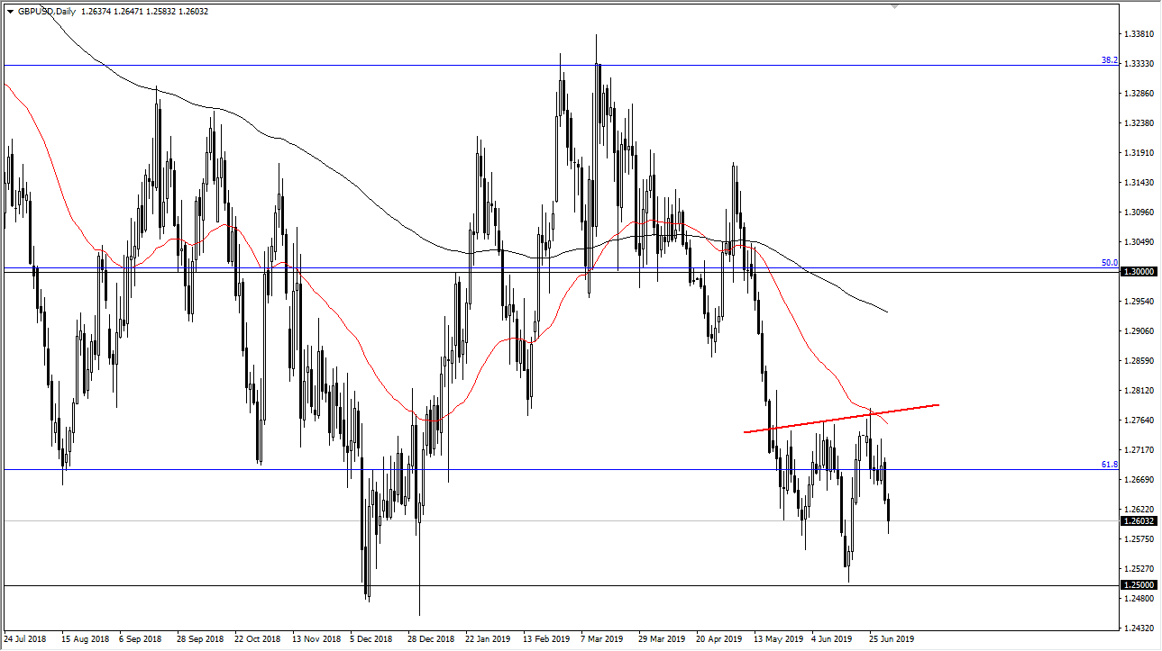 The British pound broke down significantly during the trading session as Mark Carney spoke. That being said, we have found a bit of support at the 1.26 level, and now we still are possibly trying to form an inverted head and shoulders and the next couple of days will be crucial. We obviously have a lot of problems trading this market due to the Brexit, which throws a lot of “what if’s” into the marketplace.