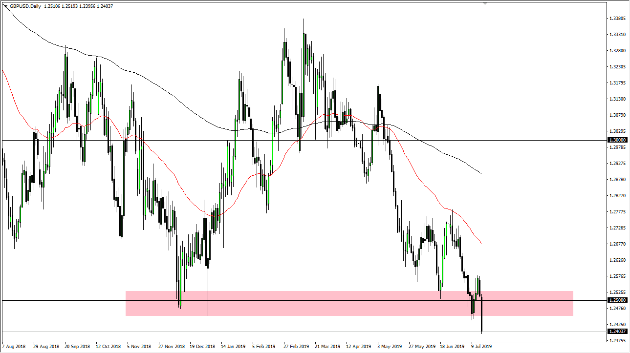 The Brexit of course continues to be a major issue, as the uncertainty with that scenario is going to cause problems with the British pound. The fact that the Federal Reserve is cutting rates and we are going to continue to go lower tells me just how negative the British pound truly is at this point. In fact, at this point I don’t have any interest in trying to buy this market until we break above the 1.2750 level above, something that seems very unlikely to happen at this point.