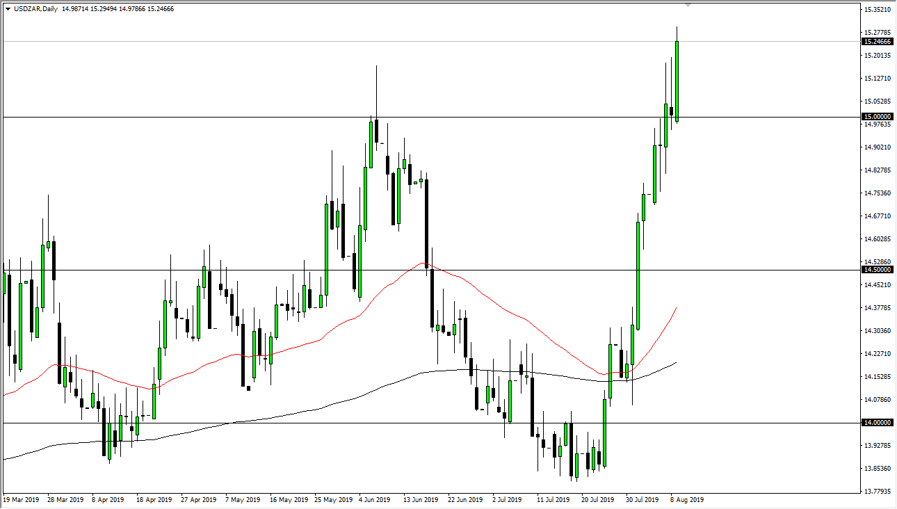 The US dollar rallied a bit during the trading session on Friday as we broke above the top of the shooting star that formed on Thursday. That’s a very bullish sign, and as a result it’s very likely that we are ready to go higher. The 15 Rand level was significant from a psychological and structural standpoint, and the fact that we broke above there is a very good sign for the US dollar. We are a bit parabolic though, so keep that in mind. Looking at the chart, I believe that a pullback probably attracts more traders, either those who are looking to go long and have missed the trade, or those who simply are trying to get out with a small loss as they tried to short based upon the shooting star.