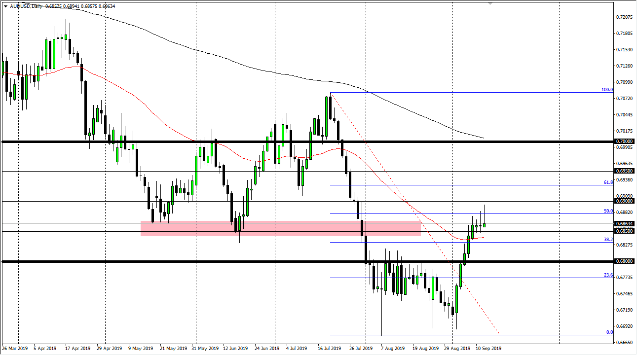 The Aussie dollar tried to rally again during the trading session on Thursday but found resistance at the 50% Fibonacci retracement level as well, and now it looks as if we are running out of momentum. With that being the case I think that we are getting ready to roll over as the Aussie dollar is a proxy for the US/China trade relations. That is of course is a situation that although better, is still miles away from some type of finalization.
