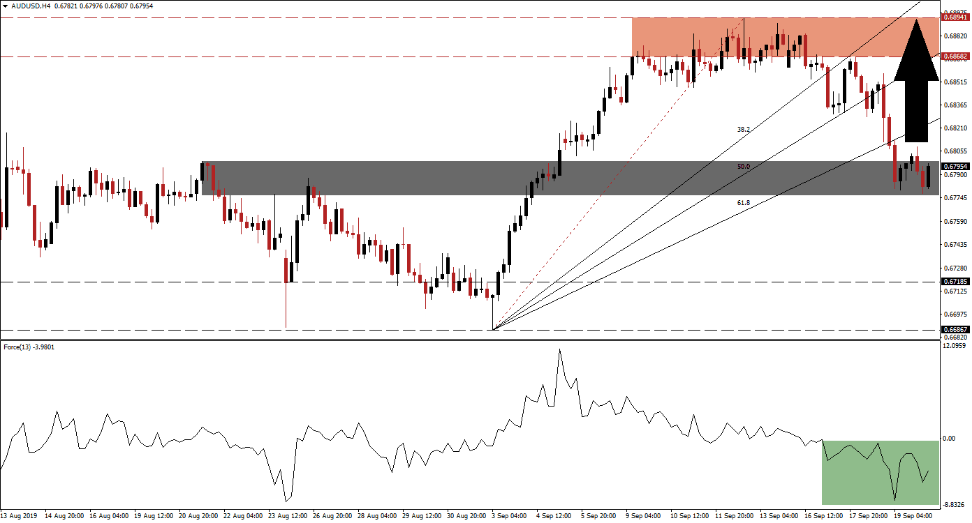 The Australian Dollar came under selling pressure as trade fears between the US and China have surfaced once again. Distrust between both countries is growing which makes a deal in October, when representatives of both countries meet in Washington for the next round of talks, very unlikely. The AUD/USD, after recording an intra-day high of 0.68694 which marks the top range of its resistance zone, completed a breakdown which took it below the entire Fibonacci Retracement Fan Sequence turning it from support to resistance. Price action is now trading below its 61.8 Fibonacci Retracement Fan Resistance Level, but above its next support zone.