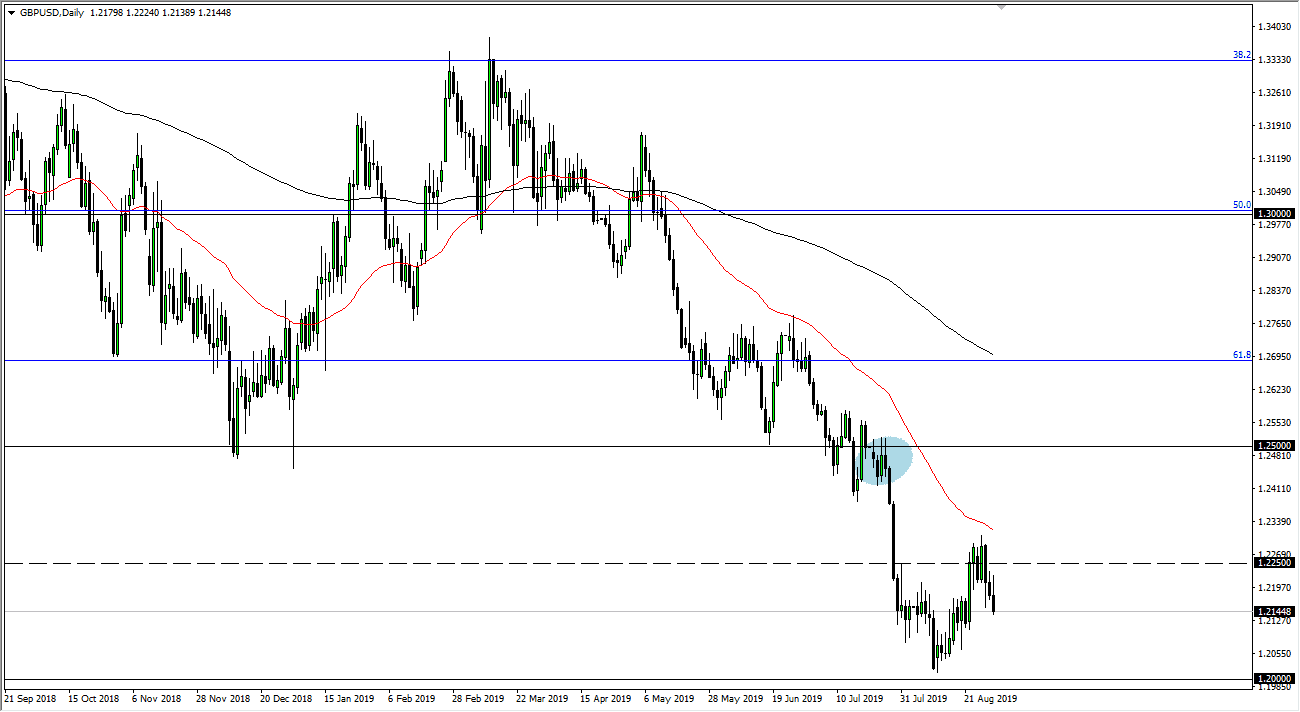 Keep in mind that the US Treasury market continues to attract a lot of attention as well, so as long as that is strong it’s likely that the pair continues to drop. Ultimately, I think it’s going to be choppy and noisy but it’s only a matter time before reach down to the 1.20 level and I think that is the next move based upon what we have seen on Wednesday, Thursday, and now of course Friday. I don’t see any reason to buy this market and wouldn’t even consider buying this market until we break above the blue circle that I have on the chart near the 1.25 GBP level. If we were to break above there it would be a major turn of events, but I can’t imagine that happening without some type of good news involving the Brexit or some catastrophic new news coming out of the United States. Even then, I suspect that you are better off buying other currencies against the US dollar than the British pound as it continues to see a lot of problems. I continue to fade short-term rallies and recognize that it is going to be very noisy on the way down.