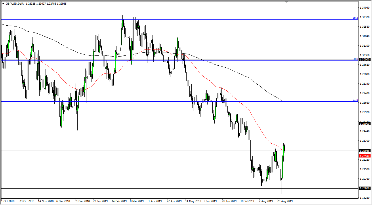 The British pound has pulled back a bit during the trading session on Friday, sitting on the 50 day EMA. We had recently broken out, so it does make sense that we could continue to go higher but at the end of the day we are a bit parabolic over the last week or so, so it makes sense that the British pound needs to calm down. Now that we have essentially seen the Parliament suggest that there is in theory no chance of a “no deal Brexit”, this should be good for the British pound at first blush. The reality is that the European Union has not been offering favorable terms, so therefore it will probably hurt the British economy.