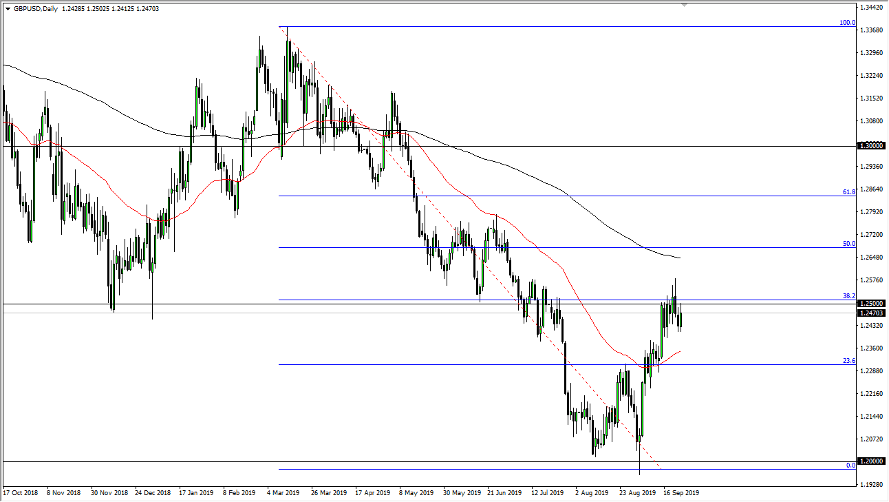 The British pound initially rallied during the trading session on Tuesday as word got out that Boris Johnson lost in the court system. Because of this, the UK Parliament should the get back to work, and that in theory could block a “no deal Brexit.” With that being the case it’s very likely that the hope still is out there that a “no deal Brexit” doesn’t happen. However, at this point, there are still plenty of issues out there when it comes to the British economy and of course the entire situation involving the Brexit in general. This is a market that is going to continue to deal with a lot of uncertainty and therefore it makes quite a bit of sense that we continue to drop given enough time.