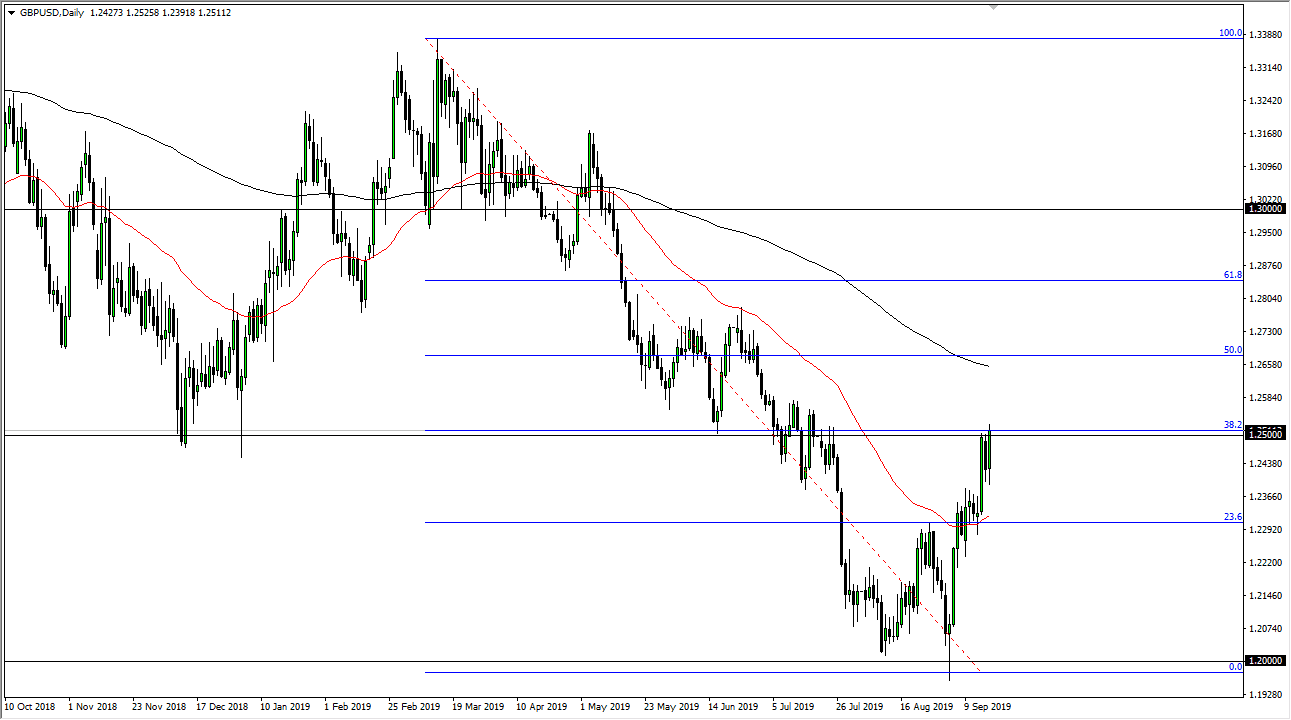 The British pound initially fell during the trading session on Tuesday, but then rallied towards the 1.25 handle. At this point, it’s very likely that the British pound will react to whatever the Federal Reserve does, or perhaps better put: the US dollar will. At this point, it is obvious that we’ve had a nice bounce in the British pound as the Brexit seems to be heading to the back burner, at least for the short term. While Boris Johnson has his day in court, the market is simply waiting around to see what happens.