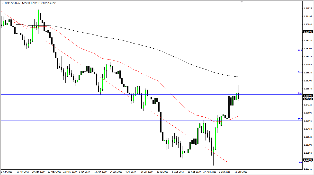 The British pound initially tried to rally during the trading session on Friday but gave back quite a bit of the gains. We continue to see a lot of selling pressure above the 1.25 GBP level, and now we are even starting to form something akin to a rising wedge, and it looks as if the market is starting to get a bit exhausted. This would make sense as we are at the 38.2% Fibonacci retracement level beyond the fact that it is the 1.25 GBP level.
