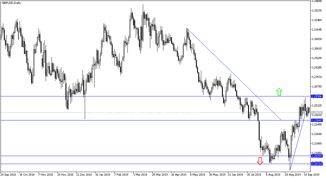 According to the technical analysis of the pair: The gap between technical indicators widens to reflect stronger selling pressure, while the SMA 200 is around the top of an important area as resistance. The RSI indicator seems ready to fall shortly after reaching an overbought area, indicating that sellers are keen to return. Stochastic is also pointing to the overbought level and started falling again to show that the downward pressure may return to the pair's performance again. This will happen if the GBP / USD falls to settle below the 1.2400 level as selling will increase to test the support levels of 1.2335, 1.2250 and 1.2190, which strengthens the bullish outlook and terminates the current bullish opportunity for the pair.