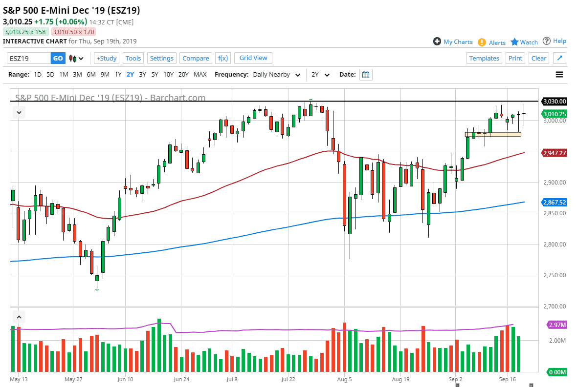 The S&P 500 is likely to flop around during the trading session on Friday, as it is what is known as a “quadruple witching day”, meaning that for different assets have options that are expiring. If that’s going to be the case, then you will have a lot of crosscurrents during the trading session and therefore price action won’t be able to be trusted. In fact, it would not be surprising at all to see the market try to break above the all-time highs, only to slam right back down in the range that we have been in all week.