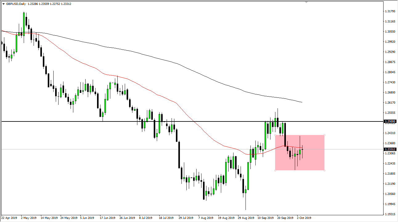 The British pound initially fell during the Friday session but then turned around of form a bit of a hammer as the market continues to dance around the 1.23 region. This is an area that has formed several hammers and a couple of shooting stars, which tells me that there is a lot of inertia being built up for a potential move. This makes quite a bit of sense, because Brexit negotiations continue, and we are getting relatively close to some type of resolution, be it good or bad.