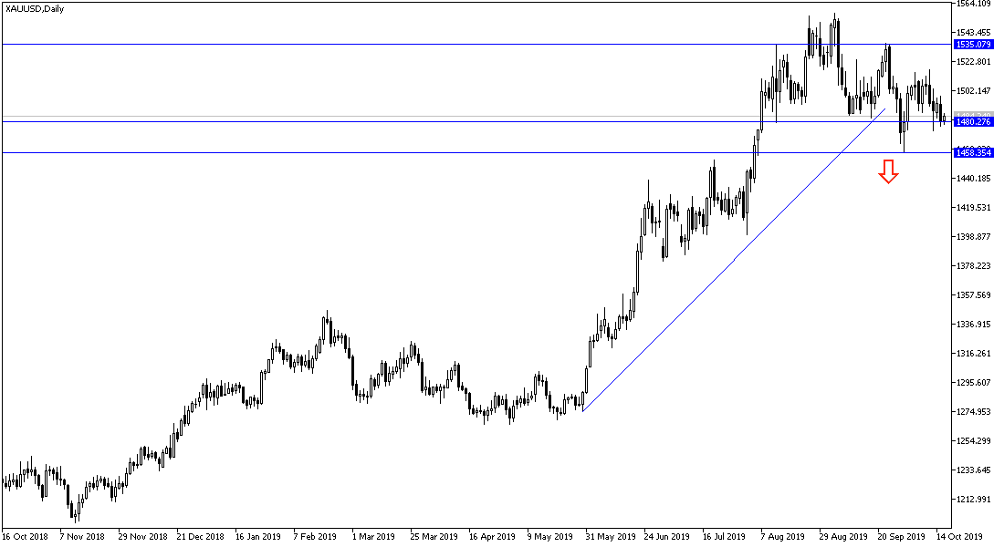 The rising risk appetite is undoubtedly hurting the price of gold as an ideal safe haven and has pushed it to the $1477 support level during Tuesday's trading session before settling around $1483 at the time of writing. The trade agreement between the United States and China and the possibility of reaching an agreement with the imminent exit of Britain from the European Union, boosted investor confidence. But at the same time, markets still want more confidence as the recent trade agreement between the world's two largest economies has not resolved all their differences, and what has happened is only a temporary lull and it is flammable at any time. The war has weakened expectations for the future of global economic growth, the latest being the International Monetary Fund (IMF) expectations that the world economy is set to grow at a slower pace in a decade this year amid weak industrial momentum and growing trade and geopolitical tensions. Growth this year will be the lowest since the global financial crisis of 2008-2009, the bank said.
