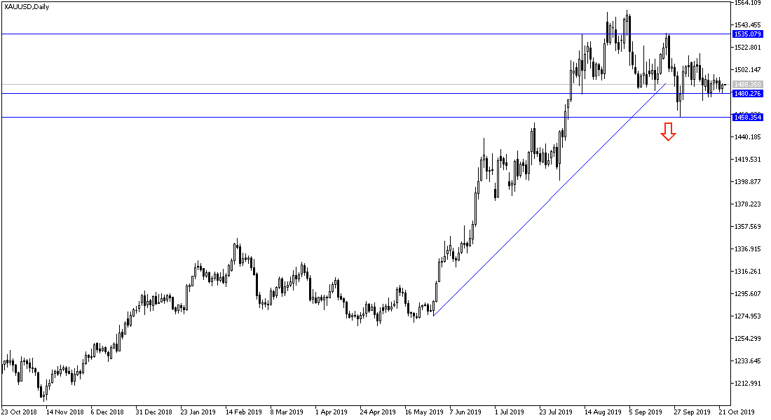 On the daily chart, it seems clear that the gold price hasn’t been moving much for several sessions as investors dispersed due to recent developments regarding the World Trade War and Brexit. The yellow metal is moving between the $1497 resistance and the $1481 support. Despite the recent partial agreement between the United States and China, the foundations of their trade dispute still exist and their tariffs remain high on each other's products. Investors are still waiting for optimistic statements between the two sides to be translated into comprehensive decisions and agreements to end the war that threatens to stagnate the global economy. For Brexit, the latest optimism is gradually evaporating as British Prime Minister Boris Johnson failed to persuade the British House of Commons to pass his final deal with the EU on their most important points of contention, the Irish border. The vote failure prompted Johnson to threaten of early elections unless parliament approves his plan.