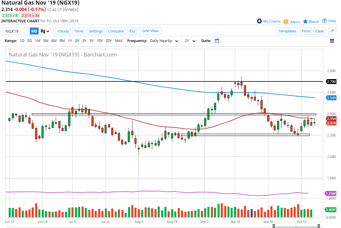 Underneath, it looks as if the $2.20 level will continue to offer support, as it was where the market has bounced from a couple of times. This looks a lot like a basing pattern to me, as we head into the colder months in North America. Temperatures are starting to drop, although they are not getting drastic yet, the first signs of fall have arrived. Just around the corner, much colder temperatures will be coming and it’s only a matter of time before we get weather reports of extreme cold. That will drive up demand for natural gas which of course will drive the market higher.