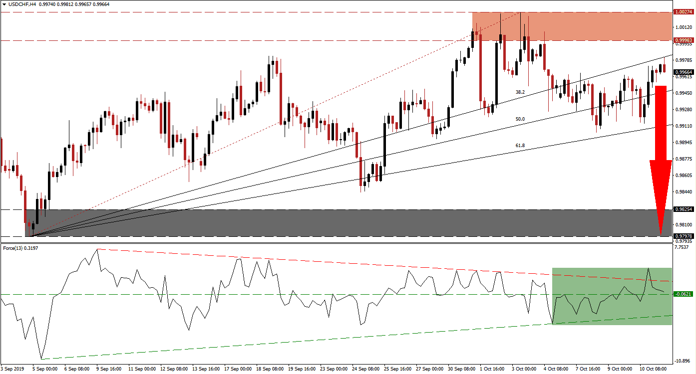 Due to the steady advance in the USD/CHF, well supported by the Fibonacci Retracement Fan sequence, a breakdown below the ascending 61.8 Fibonacci Retracement Fan Support Level will clear the path for a sell-off into its next support zone. The Force Index is expected to lead a breakdown in price action with one of its own below its horizontal support level. The next support zone is located between 0.97978 and 0.98254 which is marked by the grey rectangle. Any disappointment out of today’s trade talks should provide a fundamental catalyst to the downside as positive news have already been priced in. You can learn more about a Breakout, a Breakdown and the Resistance Zone here.