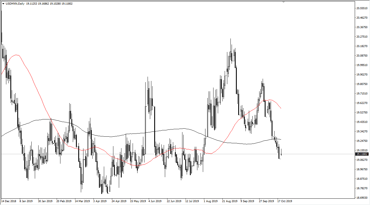 The US dollar gapped higher to kick off the trading session on Monday, showing signs of bullish pressure but gave back the gains rather early. By doing so it shows that we are still trying to build up some type of bullish pressure in the market but are quite ready to do so. Remember that the Mexican peso is very sensitive to the oil markets, which course are raining sideways. That being the case, the market looks very likely to bang around in this area, as we are just below the 200-day EMA. That is obviously something to be paying attention to, as the 200-day EMA suggests a longer-term attitude in one direction or the other. With that being the case, the market is at an area that people are going to be paying quite a bit of attention to, and therefore we could see a bit more volatility come into this currency pair.