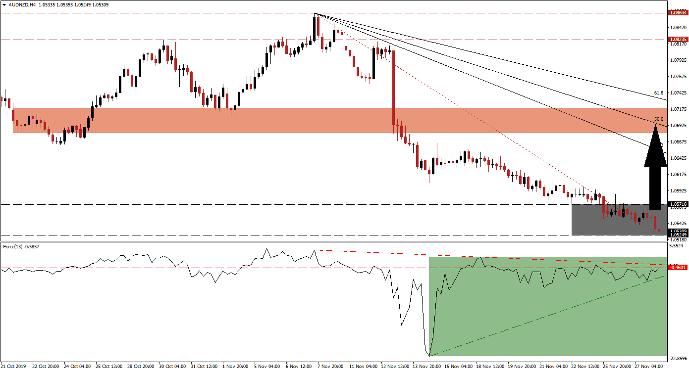 The Force Index, a next-generation technical indicator, indicates the formation of a positive divergence. This bullish trading signal started to form after the AUD/NZD broke down below its short-term support zone that was converted into resistance. As this currency pair extended its sell-off, the Force Index started to advance. It has now approached its horizontal resistance level, as marked by the green rectangle, and the rise in bullish momentum is expected to lead to a breakout above it. This technical indicator is additionally expected to push above its descending resistance level and into positive territory, placing bulls in charge of price action. You can learn more about the Force Index here.