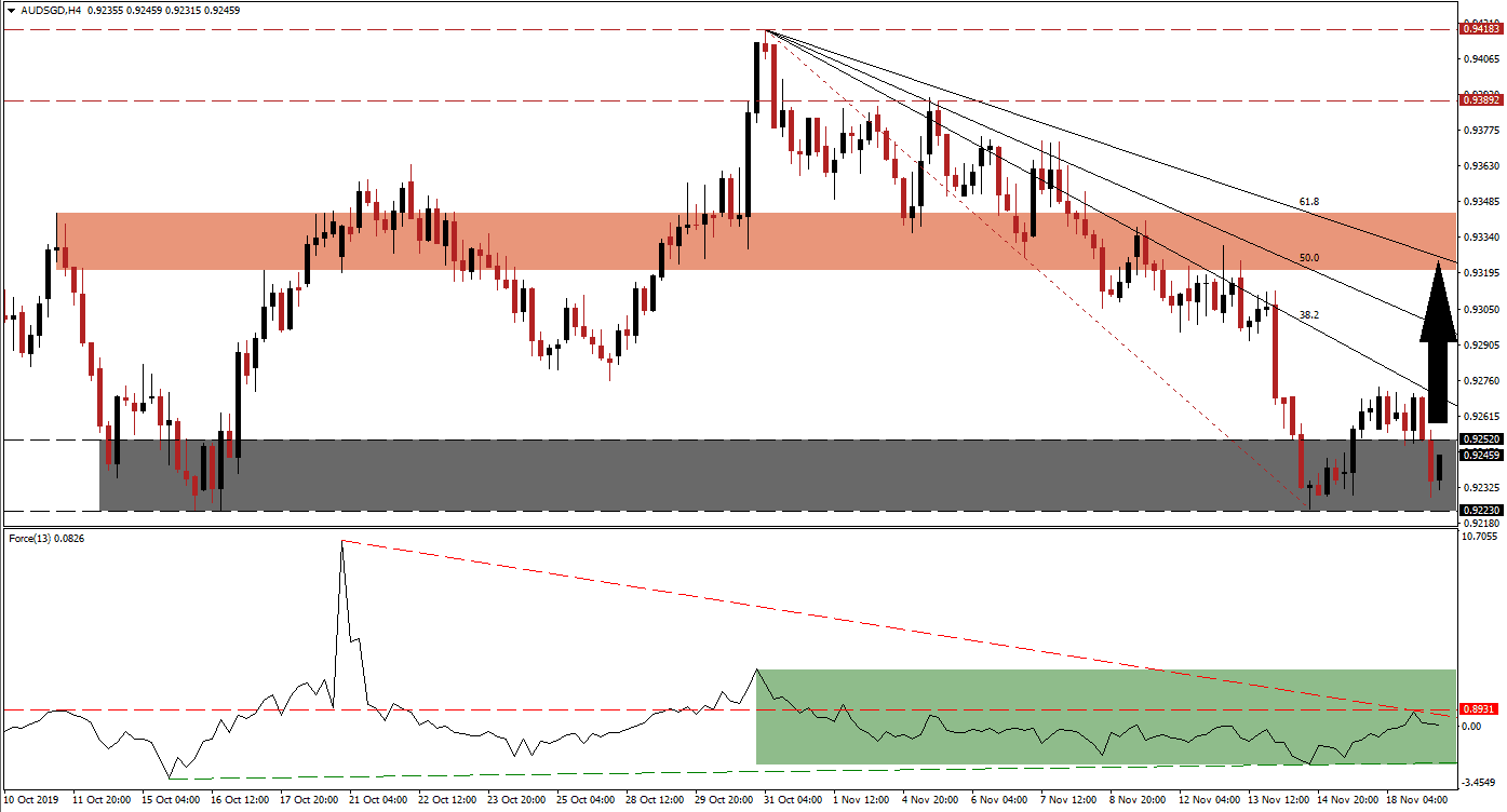 RBA minutes from the November policy meeting were released during the Asian trading session but had no material impact on the Australian Dollar. This kept the AUD/SGD locked inside its support zone as the 38.2 Fibonacci Retracement Fan Resistance Level is approaching the top range of this zone. Bullish momentum started to rise and as pressure on price action is expanding from its Fibonacci Retracement Fan, a double breakout is expected. Uncertainty over the state of the phase one negotiations between the US and China have prevented this currency pair from a breakout.