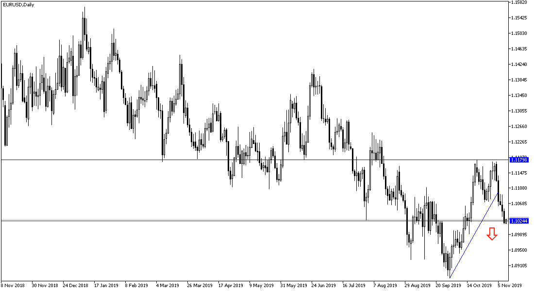 Over the course of last week's trading, the EUR/USD has been under downward pressure from a three-month high of 1.1175 resistance to 1.1016support, where it closed the week around. The pessimistic outlook for the future of the Eurozone economy has increased the pressure on the single European currency. In return, the US currency gained momentum amid expectations that a trade agreement between the United States and China will stop the pace of tariff warfare between them for a period of time, which will be positive for the US economy. So far there has been no agreement, and there seems to be no meeting on a specific day as there is no agreement on when or where the US and Chinese leaders could meet to make the official signature.