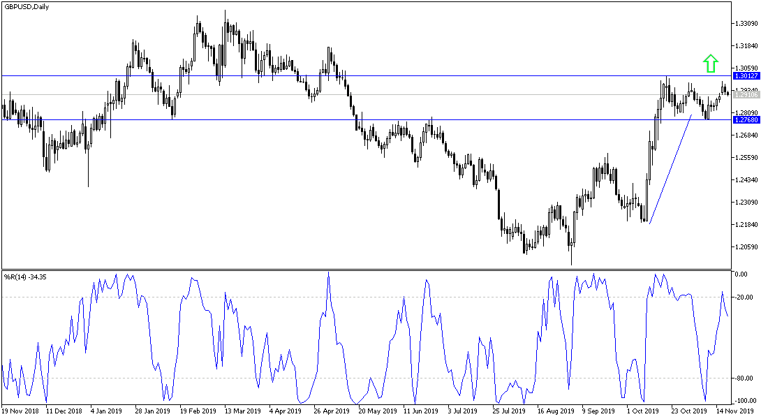 According to the technical analysis of the pair: The strength of the current bullish correction for the GBP/USD is still dependent on testing the 1.3000 psychological resistance because it may open the way for bulls to push the pair to higher resistance levels. On the downside, 1.2800 support remains the key to the downward correction, thus breaking the current bullish correction expectations. Expectations on who will win the general election in Britain next month will remain the most influential on the trend of the pair until Dec. 12, the date of the election.