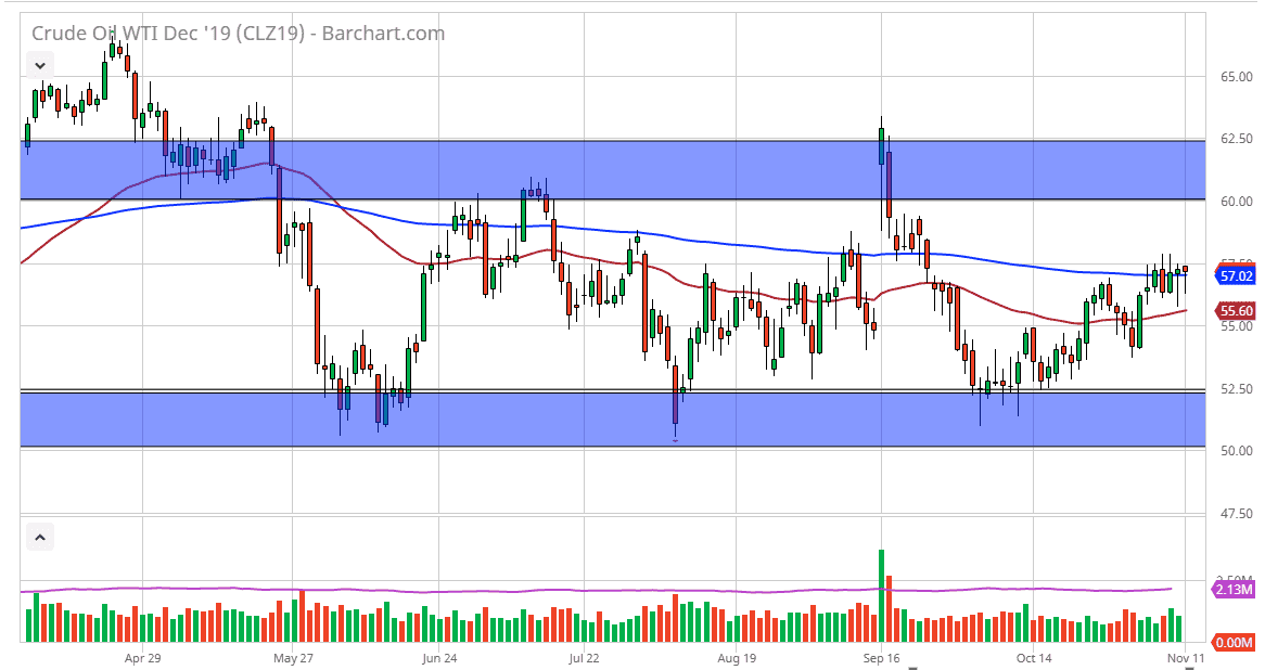 The West Texas Intermediate Crude Oil markets have pulled back a bit during the trading session on Monday to kick off the week in direct response to the US/China trade relations not necessarily been a strong as thought last week. After all, there were talks of the Americans cutting back on tariffs against the Chinese as part of “phase 1”, but at this point Donald Trump suggested that he wasn’t clear as to whether or not he was willing to cut back on tariffs. This has had people a bit concerned, as it could weigh upon the demand for energy. After all, if the US and China can’t come together with some type of terms, it will greatly influence the amount of transportation needed to move goods.