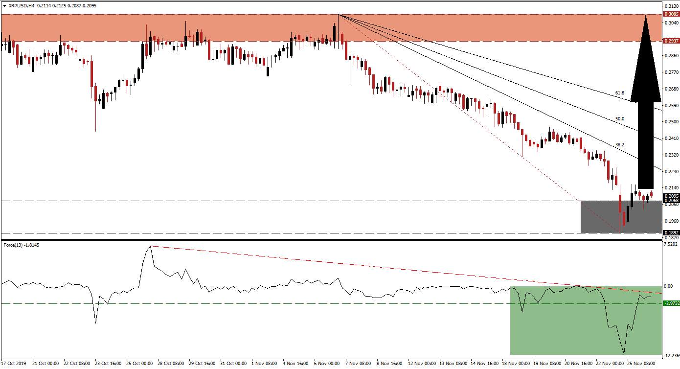 Should the Force Index fail to maintain its bullish momentum and convert its horizontal support level back into resistance with a sustained breakdown, the XRP/USD could attempt a breakdown below its current support zone. The downside potential remains extremely limited due to the magnitude of the preceding sell-off and the next support zone awaits price action between 0.1642 and 0.1784. Any move into this zone should be taken advantage of as it represents an outstanding long-term buying opportunity.