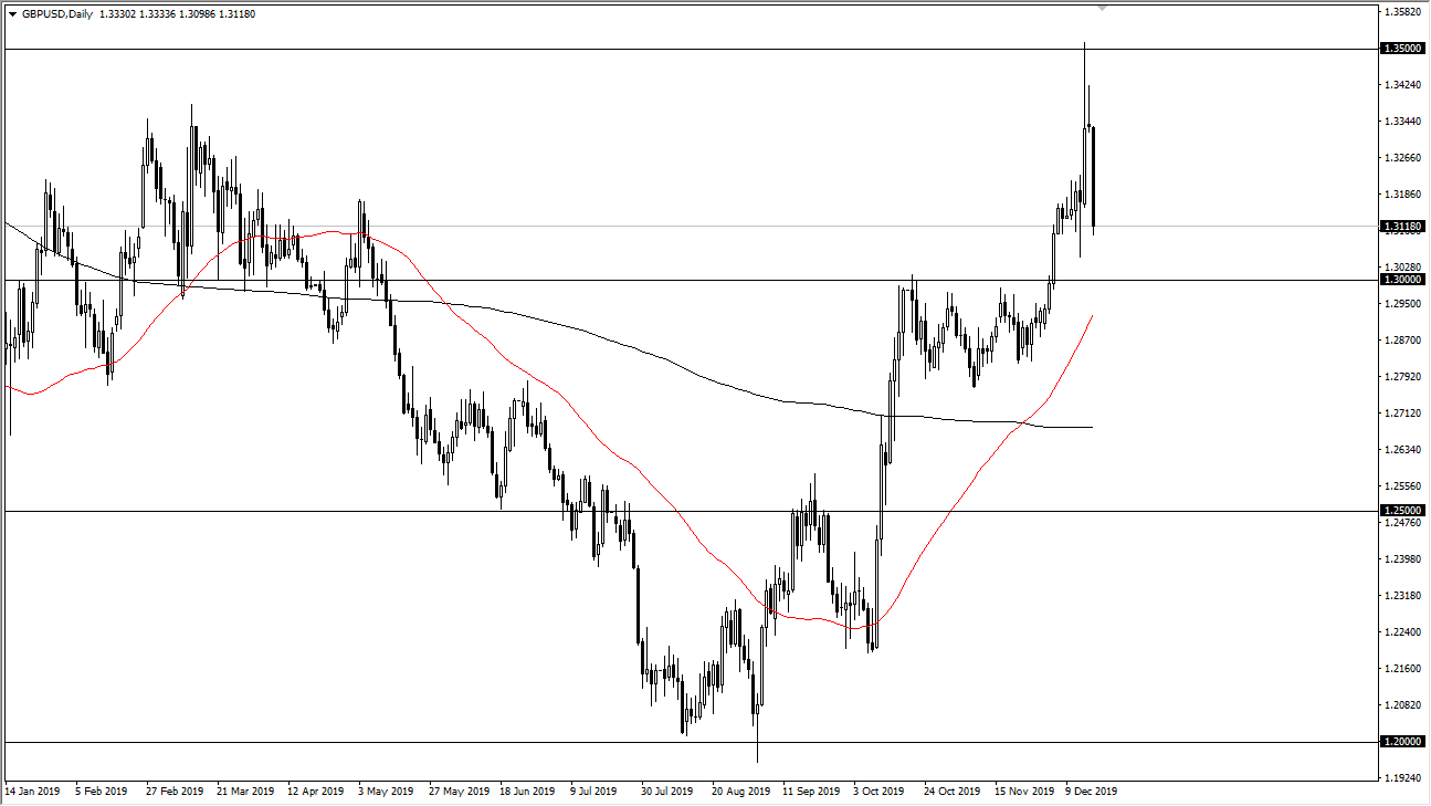 The British pound broke down significantly during the trading session on Tuesday, reaching down towards the 1.31 handle. At this point, the market is looking at significant support underneath extending all the way down to the 1.30 level. At this point, the 1.31 level is the beginning of a huge area, and I think at this point the market is going to continue to see a lot of interest as we have sold off so drastically as of late. The recent comments by Boris Johnson suggesting that he was going to prevent any type of delay of Brexit by the British government have spooked the market but quite frankly I think it was looking for reason to sell off as evident by giving back half of the postelection gain, and then of course the shooting star from the next session. In other words, the 1.35 level was going to be “a bridge too far.”