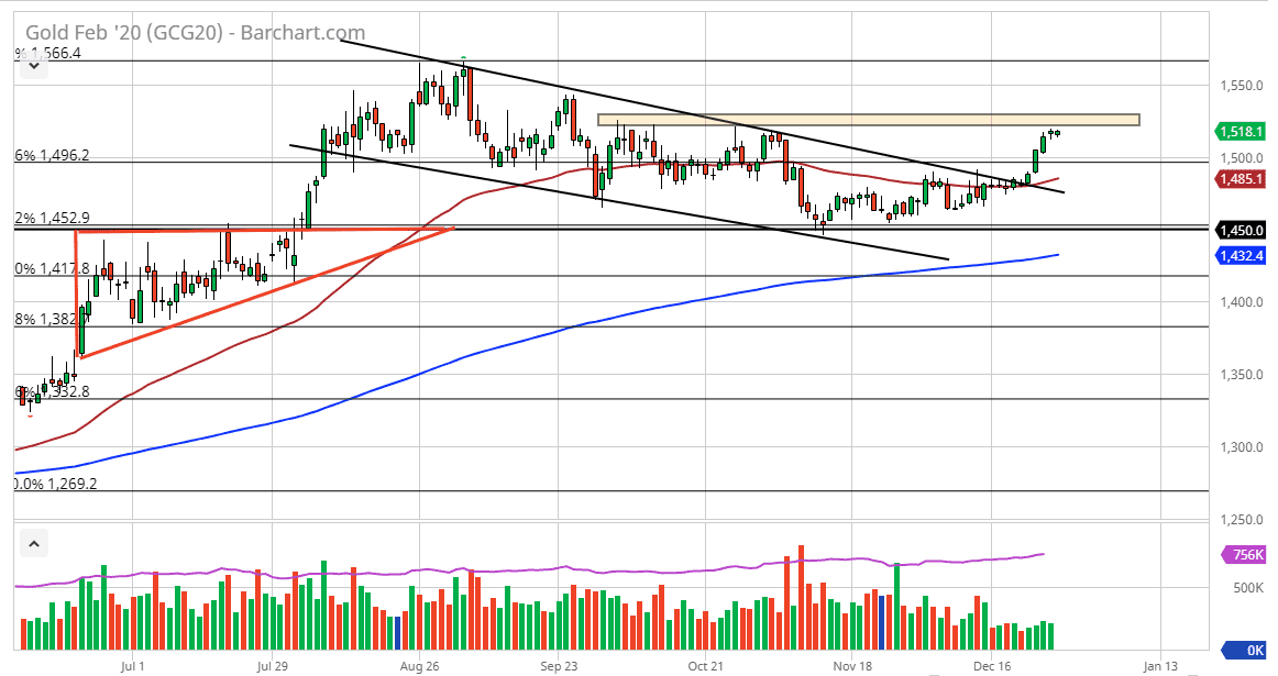 The gold markets rallied slightly during the trading session on Friday, and what would have certainly been very thin volume. At this point, the US dollar is on its back foot, but not necessarily down completely. The $1520 level should offer resistance, I think at this point we will probably see some selling pressure come in, but that doesn’t necessarily mean that it is a market that you should be selling anytime soon. In fact, I think that the lack of volume will probably cause a bit of a drift, but quite frankly it’s nice to find a bit of value going forward.