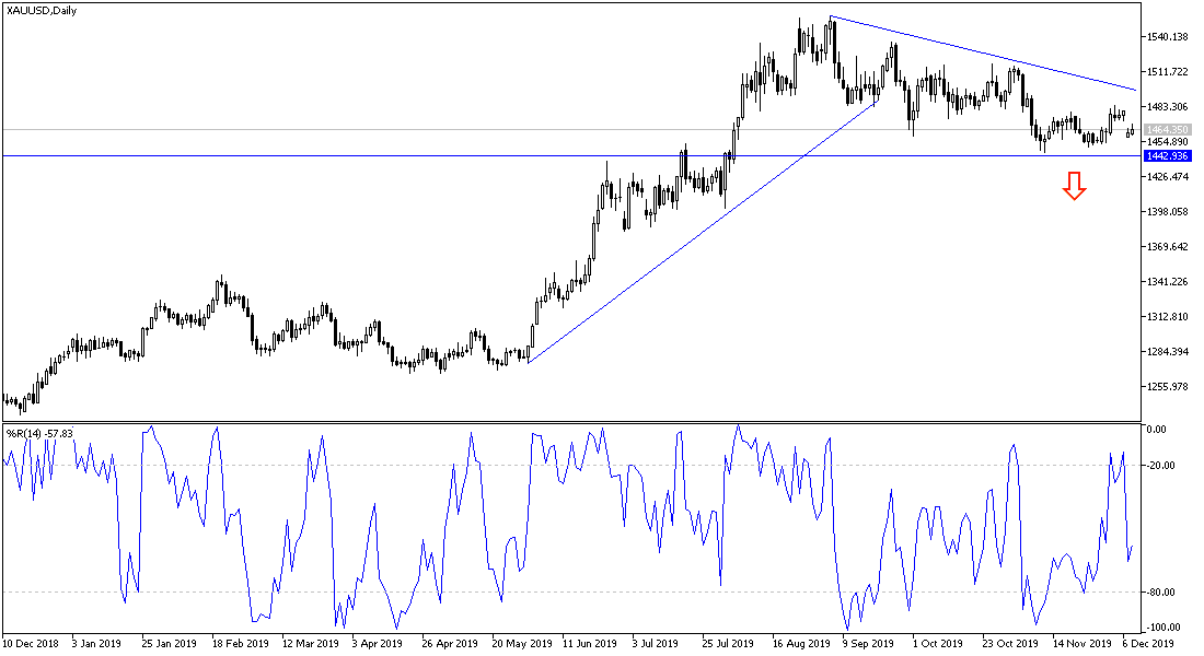 Since the beginning of this week’s trading, gold prices have watched with caution the arrival of a wave of important economic data and events affecting sentiments of global financial markets and investors. Since gold is one of the most important safe havens, then in the event that more US tariffs are imposed on China’s imports, the agreement between the US and China fails at the present time, and the British election results does not meet market expectations, that would push gold price to start moving higher. Recent gains did not exceed the $1469 level before settling around $1463 at the time of writing.