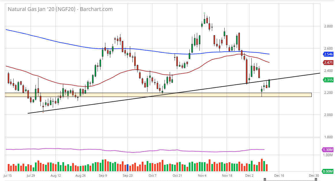 The hammer from the Monday session that sits at the $2.20 should be considered a significant candlestick, and therefore if we were to break down below it it’s likely that we could fall apart from there. That being said, the candlestick during the trading session on Thursday was very strong, and it looks likely that we could get a little bit of follow-through. Having said that, the $2.40 level would need to be cleared in order to gain a little bit of confidence. If we did break down below the candlestick from the Monday session, then it opens up the door down to the $2.00 level which of course will attract a lot of attention not only because it is such an extreme low, but it is a large, Round, psychologically important figure. With that in mind, we have a couple of levels worth paying attention to now.