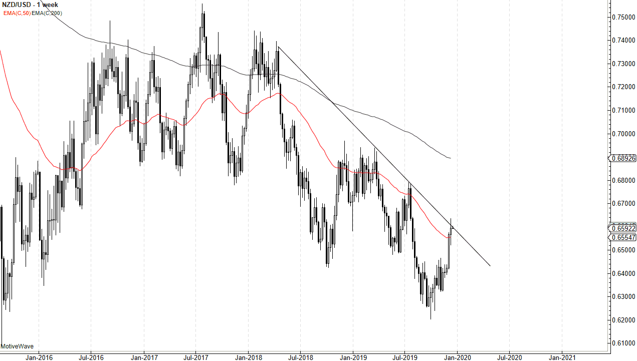 Now that the “phase 1 deal” has been agreed to, it’s not necessarily signed so we will have to see how that agreement plays out over the longer term. At this point in time, the downtrend line is the most important thing that I will be paying attention to, and a follow-through move above the 0.6650 level should send this market much higher, reaching towards the 0.68 level. This is what we would anticipate seeing, because the New Zealand dollar is highly sensitive to the Chinese economy, so therefore the US/China trade war takes front and center. Now that the agreement is supposedly agreed-upon, if something was to work against signing the actual paperwork, the New Zealand dollar will get absolutely crushed because it is not only sensitive to China, but it is also a commodity related currency so therefore it could get very ugly if people don’t agreed to the potential deal.