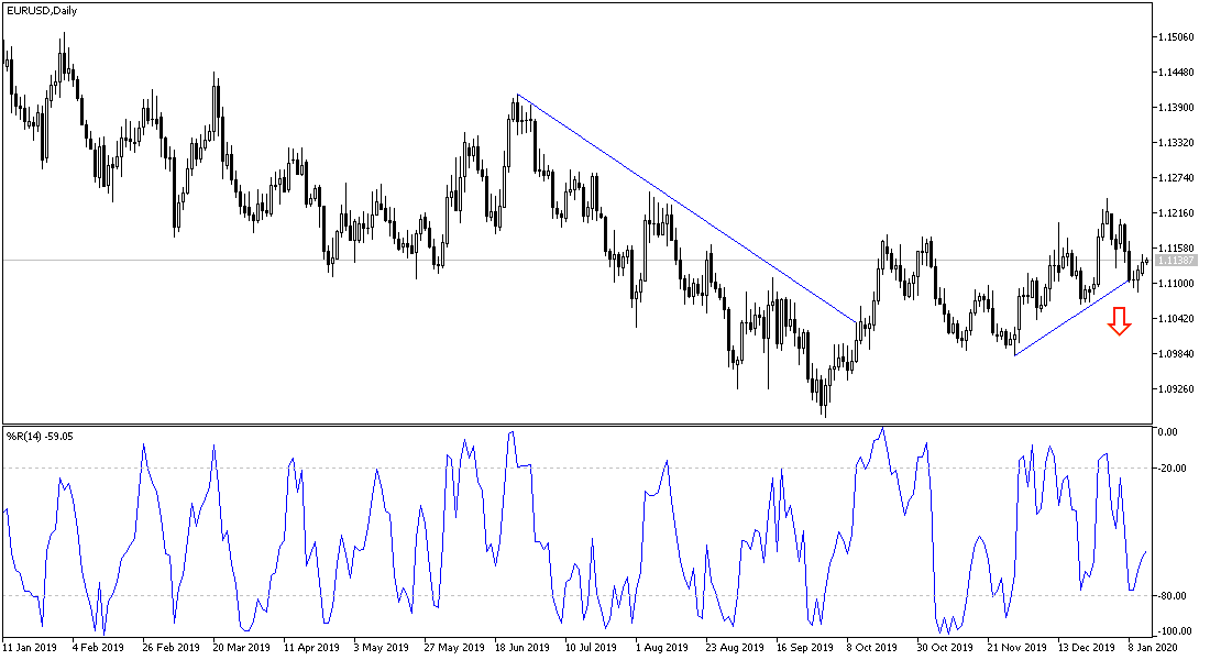 The price of the EUR/USD pair is trying to correct higher for the third consecutive day, but gains are still limited and not exceeding the 1.1146 level, before settling around 1.1138 at the time of writing. The performance may remain as is until the US inflation figures are announced starting from today, in addition to the formal signing tomorrow of the Phase 1 trade agreement between the U.S and China. Optimism prevails in the global markets due to this agreement, as the two sides show a strong desire to end the tariff war between them. Details of the agreement will be important for investors to get to know the next stages and where things have arrived.