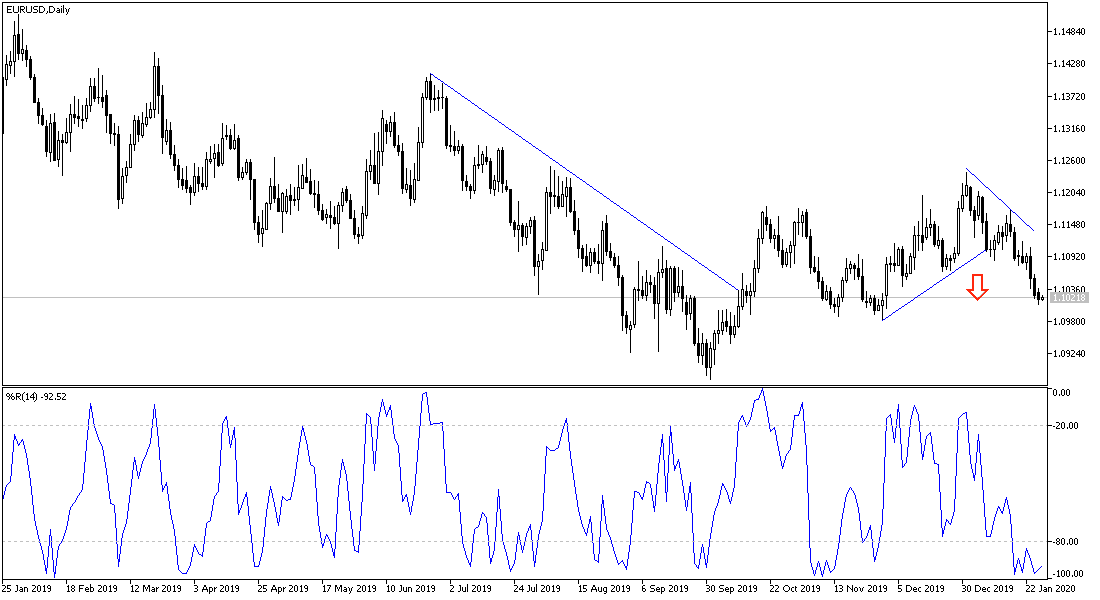 According to the technical analysis of the pair: On the daily chart, the price of the EUR/USD pair is still in the range of a descending channel, and this reversal will be strengthened if the pair penetrates below the 1.1000 psychological support. The closest support levels currently for the pair are 1.0985 and 1.0880, and there will be no control of the bulls on performance without moving above the 1.1200 resistance, which it tested at the beginning of January 2020. The pair still lacks catalysts to reverse the current downward outlook. The economic performance of the Eurozone is still weak, and the European Central Bank is sticking to its policy, contrary to the desire of the markets to announce more stimulus plans.