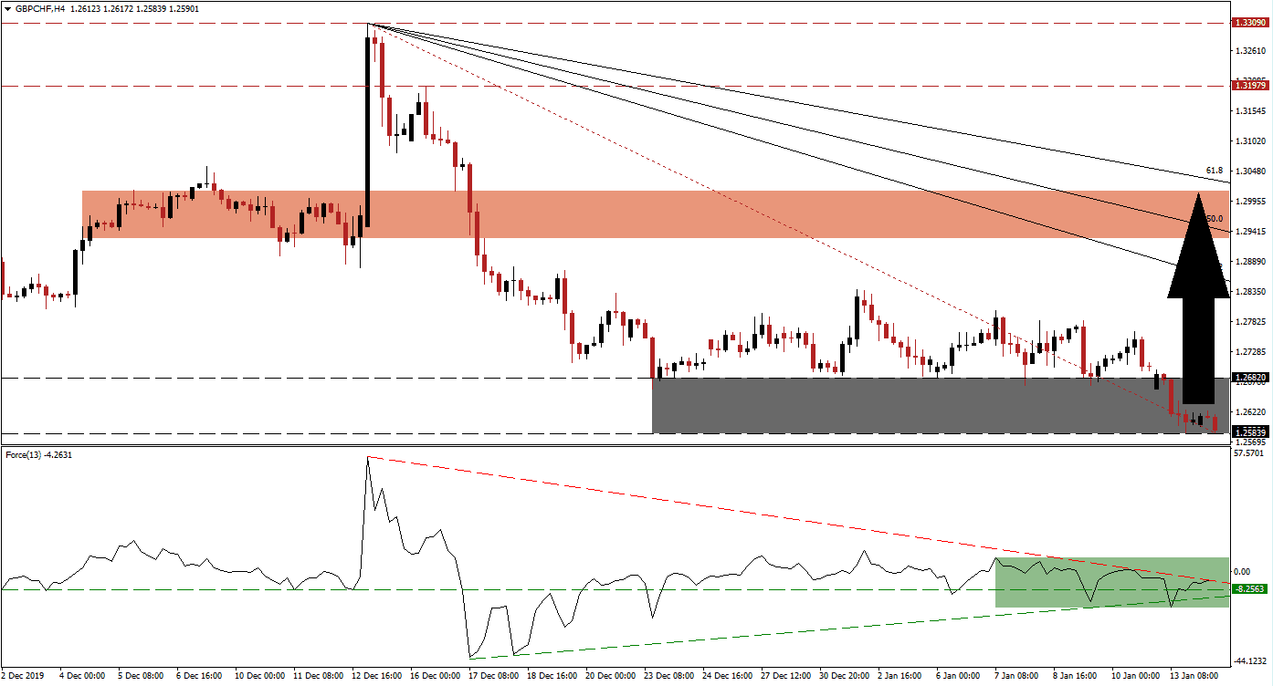 The Force Index, a next-generation technical indicator, has recovered from its latest dip and is now faced with its descending resistance level. A marginally lower low resulted from the previous contraction, which took the Force Index shortly below its ascending support level. With the rise in bullish momentum, this technical indicator eclipsed its horizontal support level, as marked by the green rectangle. Bears remain in control of the GBP/CHF, but a breakout above its descending resistance level is favored to lead price action into a recovery.
