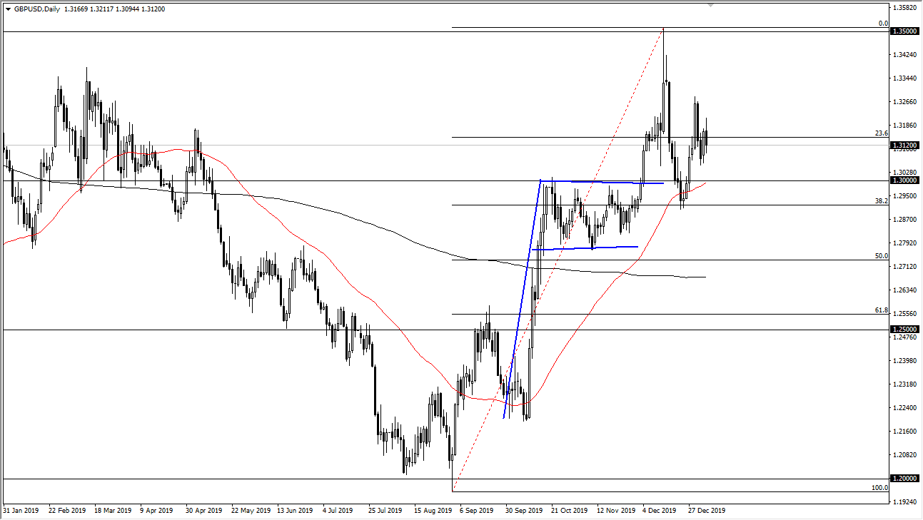 The British pound has been a bit noisy during the trading session on Tuesday, as we continue to dance around the 1.31 level. At this point, the market is very likely to find a lot of noise due to the fact that Brexit is still going on and of course the negotiations between the United Kingdom and both the European Union and the United States. Ultimately, this is a market that has been very bullish, but the last couple of weeks have been a little bit more difficult than the ones before. The 50 day EMA underneath is reaching towards the 1.30 level, which of course is a large, round, psychologically significant figure. It’s also the top of a bullish flag that has been such a predominant feature of this chart. That bullish flag measures for a move to the 1.38 handle, but that doesn’t mean that we get there overnight.