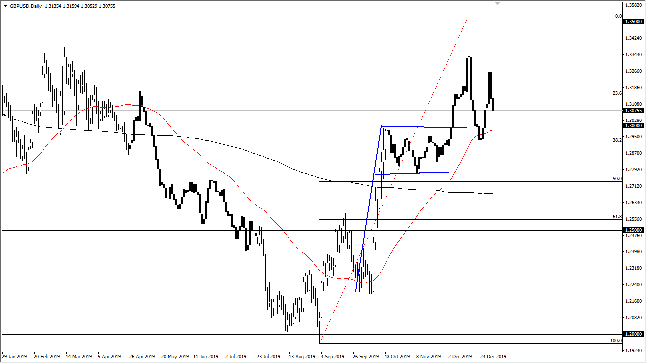 The British pound fell during the trading session on Friday, slicing through the 1.31 handle. At this point, the market looks very likely to reach down towards 1.30 level as we have seen a bit of pullback, mainly due to a major “risk off” type of move. Ultimately, the Americans killing an Iranian general of course have people running for cover, and based upon the fact that the British pound has to deal with the Brexit situation and the fact that a lot of people will throw money into the treasury market in the US, this move makes quite a bit of sense.