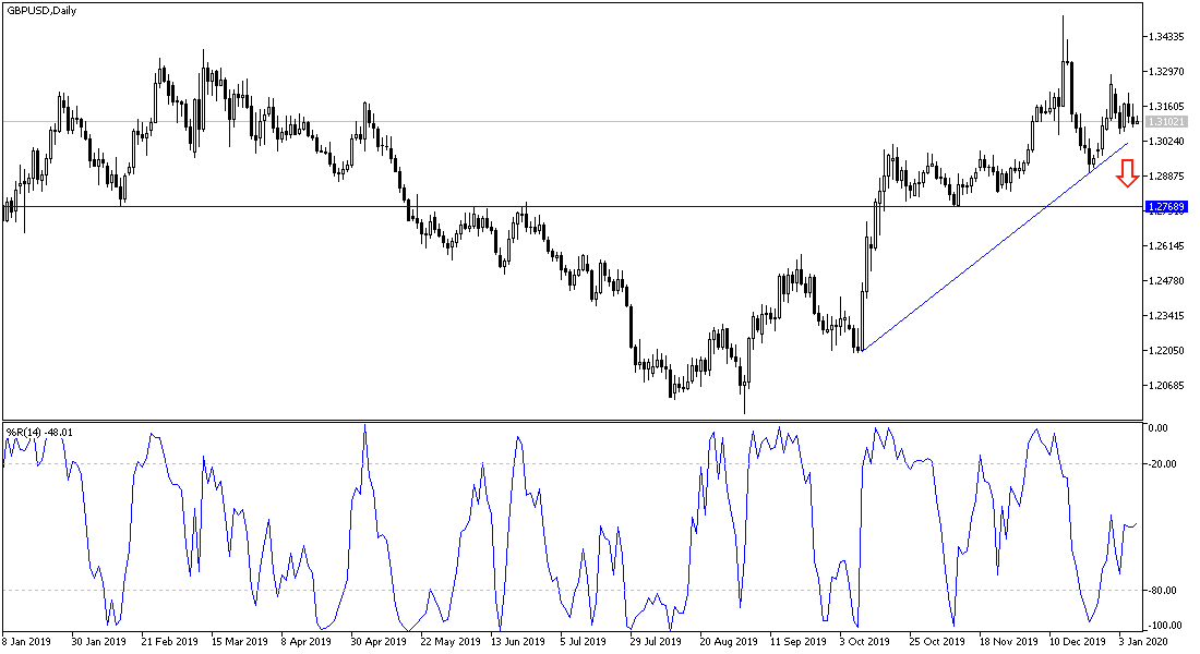 According to the technical analysis of the pair: The GBP/USD pair is trying hard to avoid moving towards the 1.3000 psychological support, which supports the strength of the downtrend. As we expect and confirm now, there is no strength for the bullish correction again without the pair moving steadily above the 1.3300 resistance. Brexit developments, the US trade agreement with China, and the situation in the Middle East, are all factors that fluctuate the performance of this pair in the coming period.