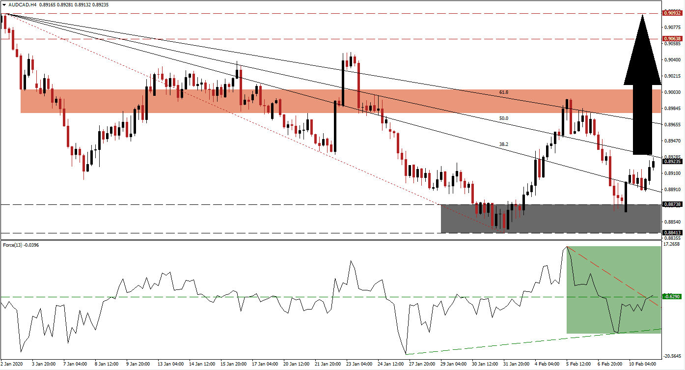 Better than expected housing data out of Canada released yesterday was trumped by a surprise surge in the value of home, owner-occupier, and investor loans out of Australia. This came on the back of the devastating bush fire season and the deadly coronavirus outbreak. It allowed the AUD/CAD to recover from inside of its support zone after recording a higher low. NAB business conditions remained stable in January, but confidence was depressed. You can learn more about a support zone here.