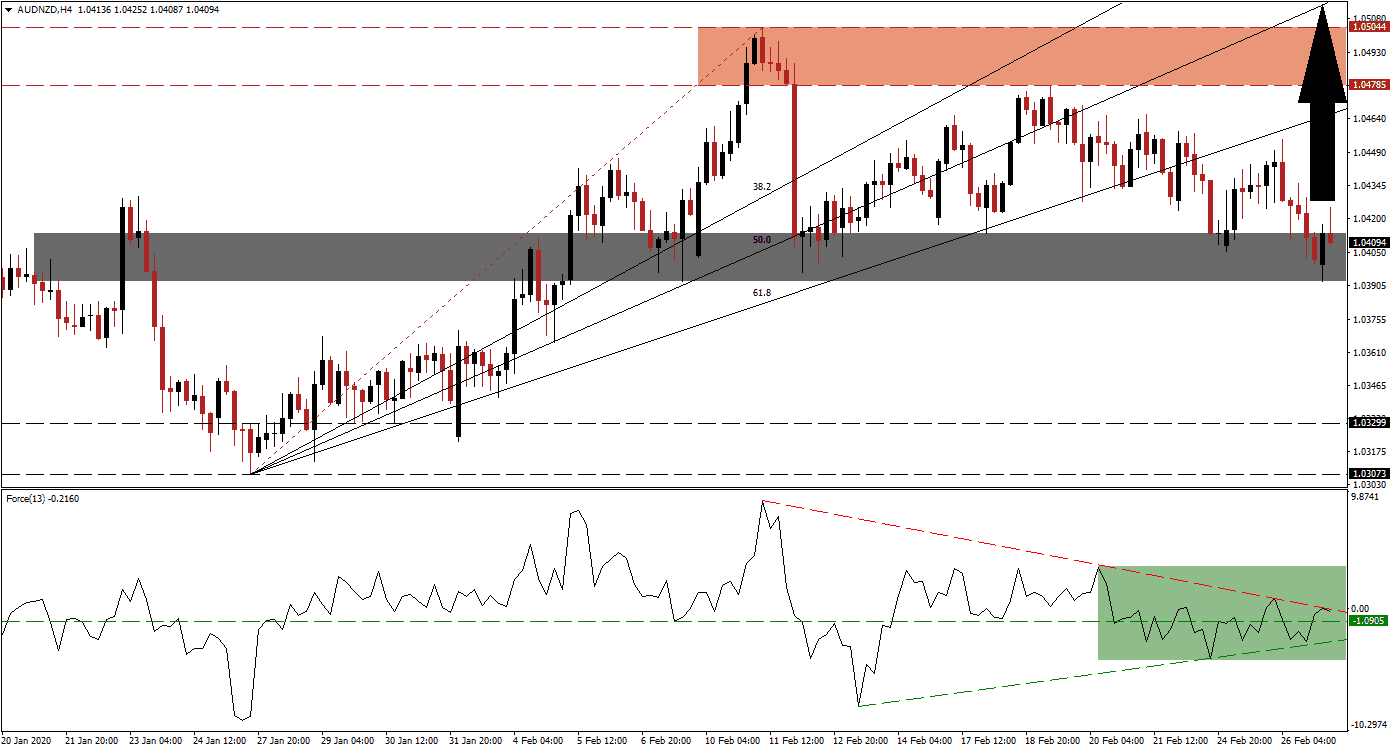 In case of a breakdown in the Force Index below its ascending support level, the AUD/NZD is anticipated to be pressured into an extension of its corrective phase. Forex traders are advised to consider any breakdown from current levels as a good buying opportunity. Given dominant bullish developments, the downside potential appears limited to its long-term support zone located between 1.03073 and 1.03299.