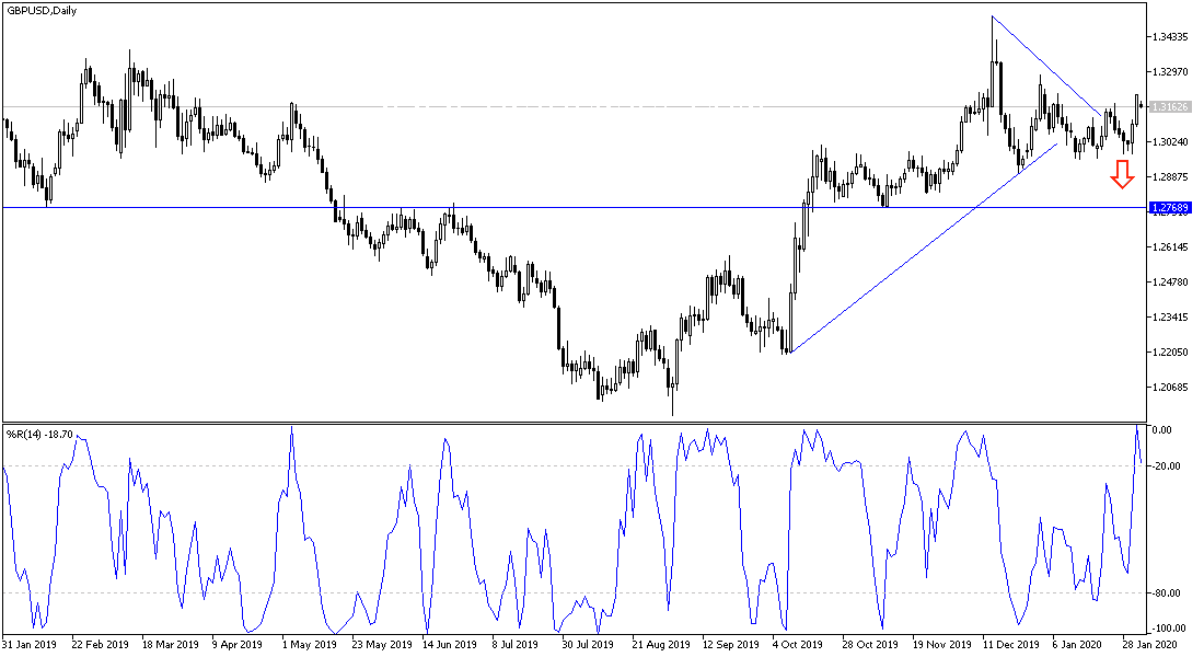 Last Friday’s session, on the 31 January 2020, was the official date for Brexit. The pound got some gains against most of the other major currencies, as international markets waited 4 years for this date. The share of the GBP/USD rebound was to rise to the 1.3208 resistance, its highest level in nearly a month, and is stable around 1.3160 at the time of writing. As we mentioned before, we now confirm that the gains of the British Pound may soon evaporate during the months of the transitional period, during which there will be negotiations between the two sides of Brexit on the future of trade relations between them, knowing that dispute is a feature of negotiations between them.