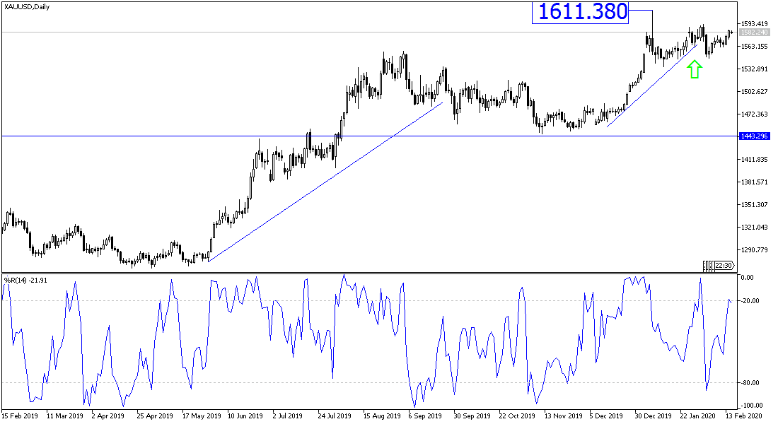 According to the technical analysis of gold prices: As we expected before, we now confirm that gold prices are still inside the formation of a bullish channel and the recent global developments may push the price of gold to the $1611 psychological resistance very soon. Yellow metal purchases do not stop while the Coronavirus persists. Prices ignore the technical indicators reaching overbought areas, as bull control factors are increasing. There will be no bearish correction of gold prices without a break below the $1550 support in the near term. We expect quiet moves at the beginning of this week's trading in light of the American holiday, while observing the developments of the Covid 19-Chinese epidemic.