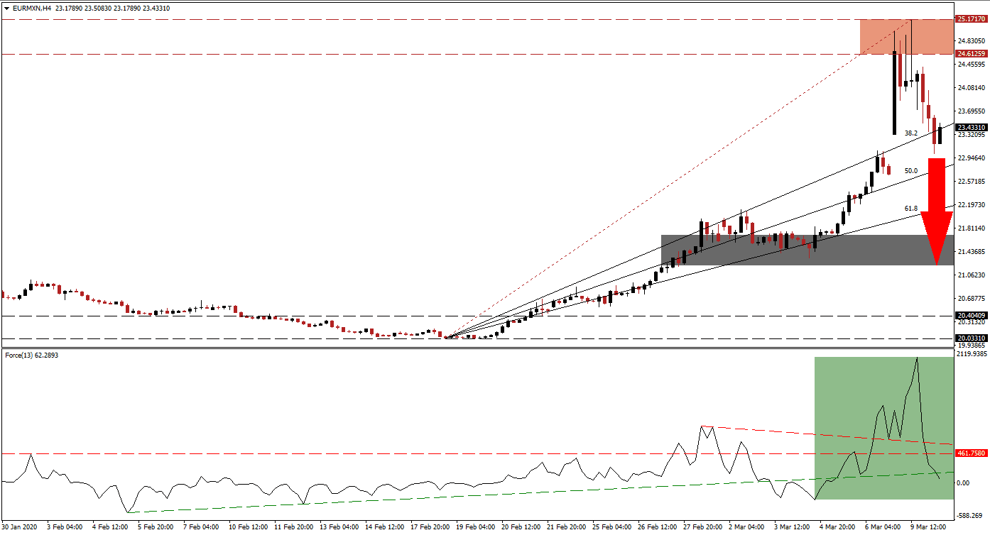 Following the collapse of the OPEC+ deal to limit supply in favor of price stability, oil prices suffered their most critical breakdown since the US invasion of Iraq in 1991. It sent a ripple effect throughout the global economy, displacing Covid-19 related fears. While the virus generates a short-term shock to the supply chain and domestic demand, weak oil prices provide a long-lasting negative impact. The EUR/MXN soared to a new all-time high, forming a new resistance zone. A profit-taking sell-off quickly emerged amid a collapse in bullish momentum.