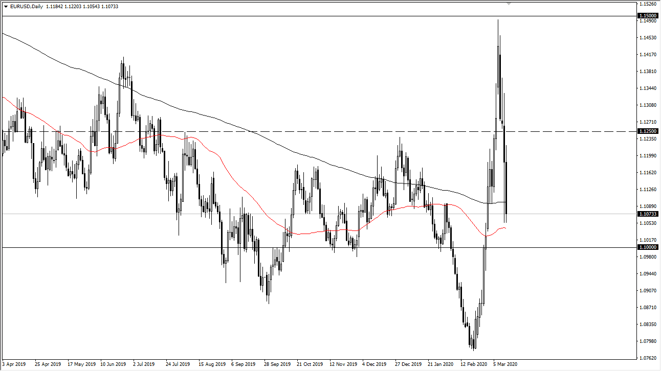 The Euro got crushed during trading on Friday as Germany has announced that it was willing to break its budget. This of course is a very negative turn of events, at least as far as the currency is concerned. At this point, the market found itself reaching towards the bottom of the candlestick from Thursday before it paused. Quite frankly, markets are trading on pure emotion right now so it’s difficult to do any meaningful technical analysis. In this scenario, all we can do is look at the longer-term charts and try to make some type of sense out of them. Underneath, I see the 1.10 level underneath to be massive support, just as the 1.15 level above should be thought of as a massive resistance barrier. For what it’s worth, the 1.1250 level should be an area that people look at as potential “fair value”, but that doesn’t necessarily mean that it will hold. Remember, it’s going to be about the latest headline more than anything else.