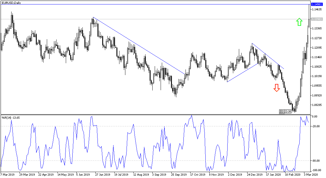After announcing the rate cut and more stimulus from the central banks in the United States of America, Canada and Australia, the attention of investors this week is turning to the European Central Bank’s decision. Prior to the important announcement, last week saw the best performance for the EUR/USD pair, as it moved upward towards the 1.1355 resistance, its highest in eight months, supported by the exacerbation of the Corona epidemic outbreak in the United States, especially with the declaration of a state of emergency in three American states. The pair closed the week's transactions around the 1.1288 level after the announcement of better-than-expected numbers for US jobs during February 2020. In early trading this week, the pair continued to rebound up with gains reaching 1.1496 before settling around 1.1400 at the time of writing.