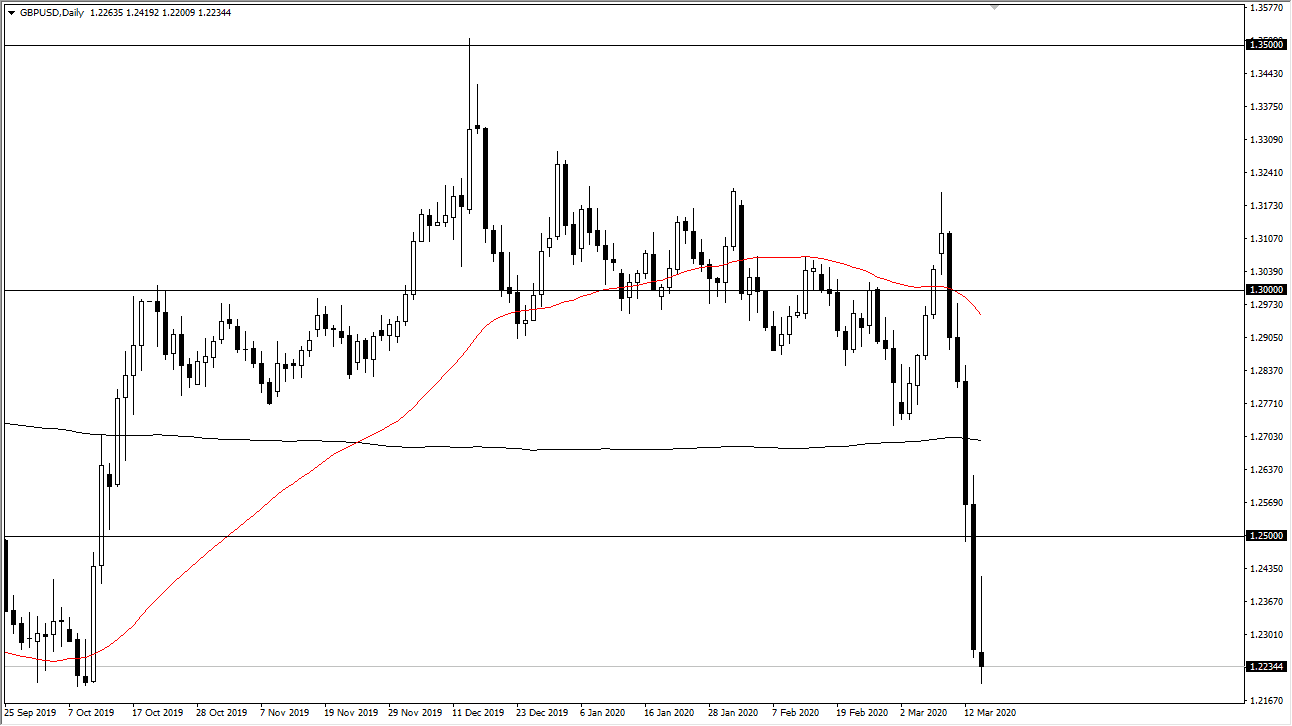The US dollar will more than likely be looked at as a safety currency, and it appears that the United Kingdom is suffering from the explosion in cases as well. Rallies at this point will more than likely be sold into as we continue to see a lot of uncertainty, as the market is likely to continue to find sellers. I think that at this point the 1.20 level underneath might be the target based upon longer-term charts, and it’s obvious that if we get close to the 1.25 handle it will attract a lot of attention. The psychological importance of that figure will continue to offer resistance, so I think it makes sense that we rollover at that point. If we did manage break above the 1.25 level that could change some things but at this juncture it seems to be very unlikely.