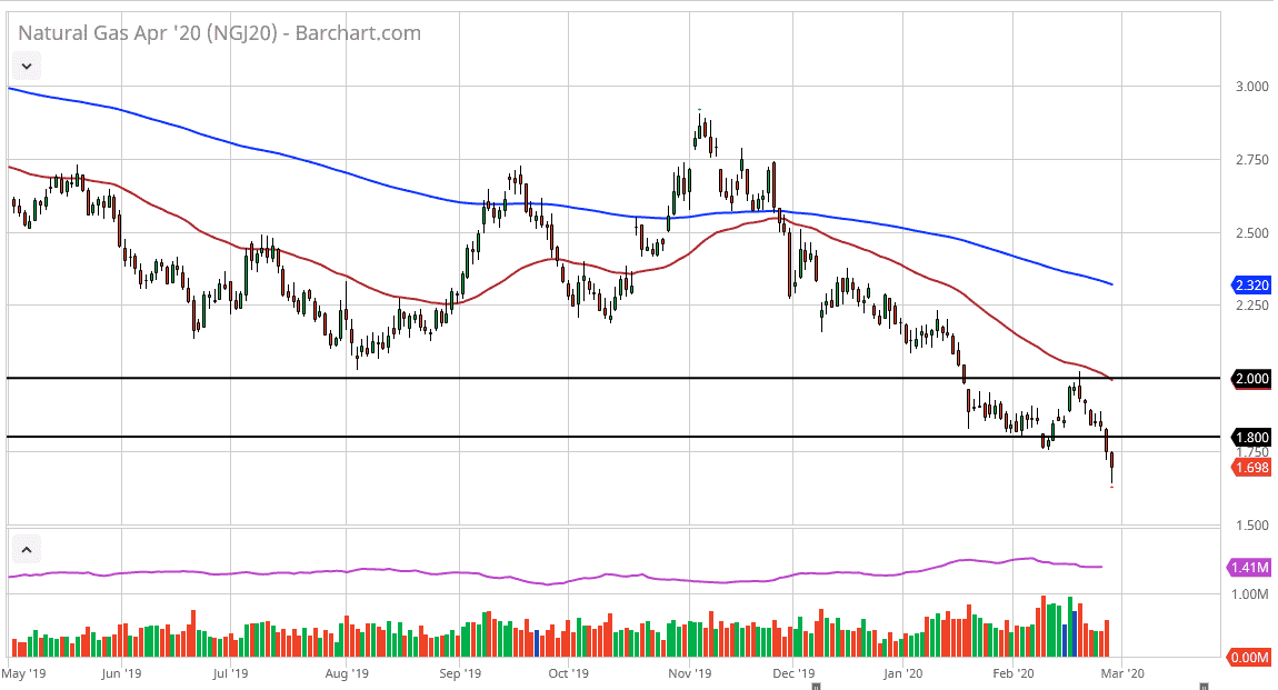 The natural gas markets broke down a bit during the trading session again on Friday, as we continue to see a lot of weakness in this market. The oversupply of natural gas continues to be a major concern and as far as I can tell, it’s very likely that the market will try to bounce back a bit, but the $1.80 level above will probably offer resistance as it was previous support.