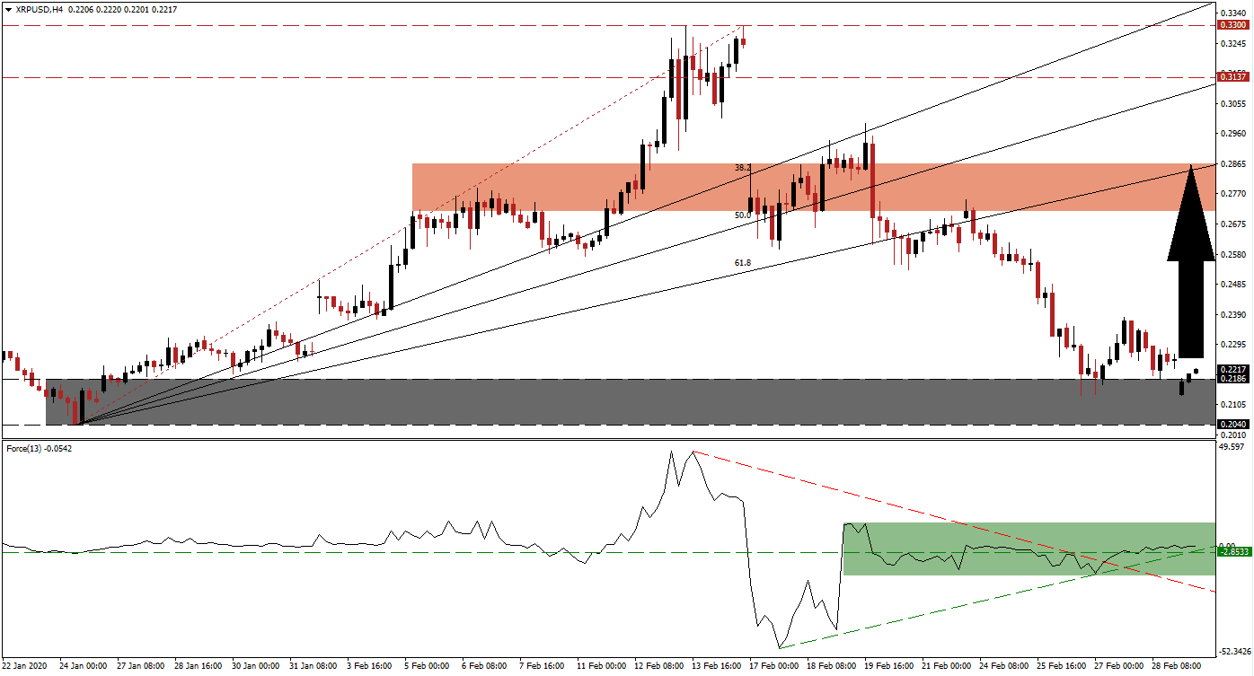 Covid-19 related panic selling last week swept across the entire global financial system, cryptocurrencies included. It provided more evidence that this emerging asset class is correlated to other assets, primarily due to the inflow of institutional capital into the sector. Adding to short-term downside pressure is the release of one billion Ripple tokens from escrow by the Ripple Foundation, worth roughly $230 million. The frequent dumping of one billion tokens has angered a continuously growing number of traders. Despite the dump, the XRP/USD pushed out of its support zone from where a short-covering rally is anticipated.