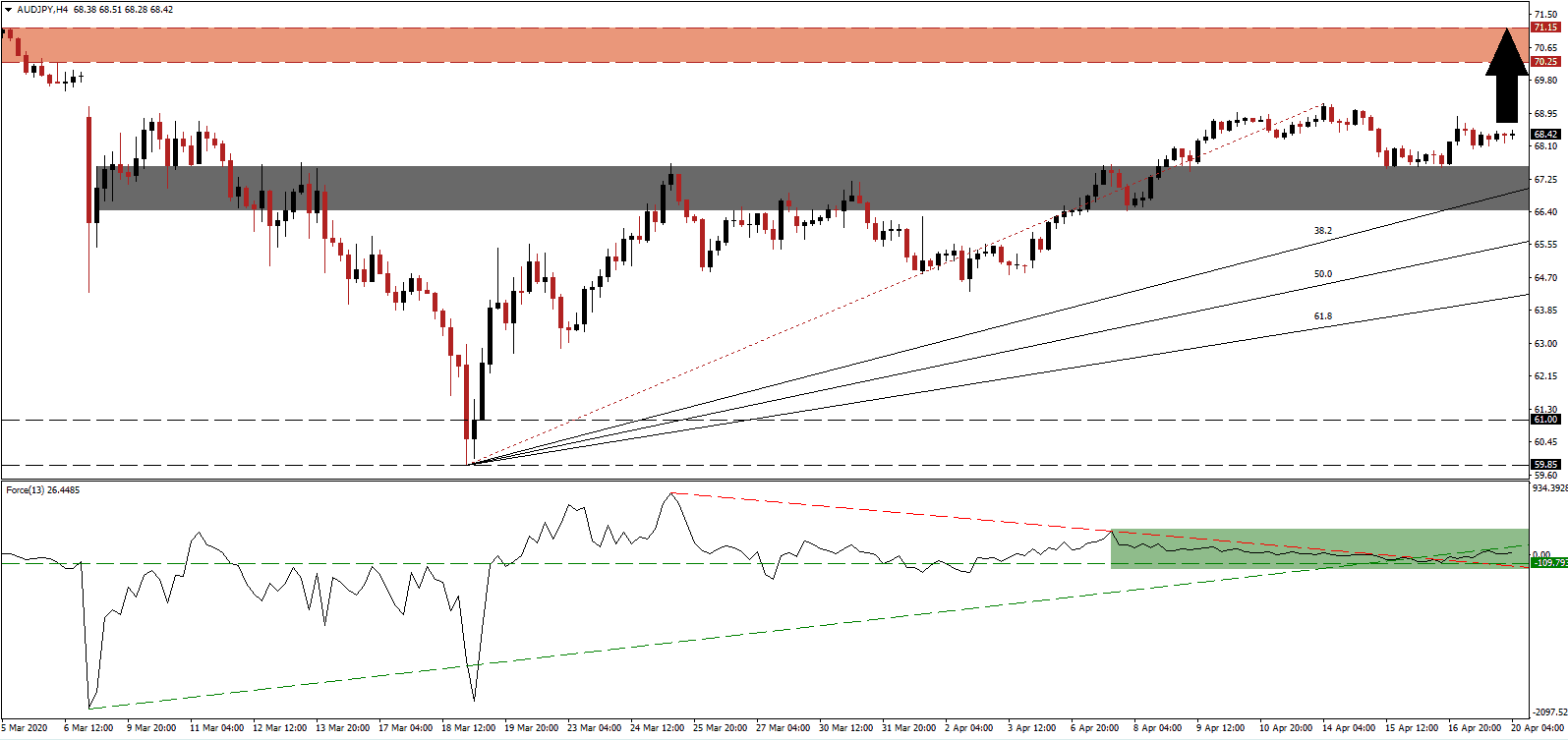 Australian Prime Minister Morrison and his government is exploring options to pay for the massive stimulus announced in response to the global Covid-19 pandemic. He ruled out a tax increase, as suggested by some, noting the economy needs to recover, allowing taxpayers to return to work. It highlights one enormous issue as some countries are nearing the peak of the outbreak. The bailout costs were unprecedented, and while a temporary bridge was required, the long-term negative impacts need to be solved. The AUD/JPY maintains its bullish stance after transforming its short-term resistance zone into support.