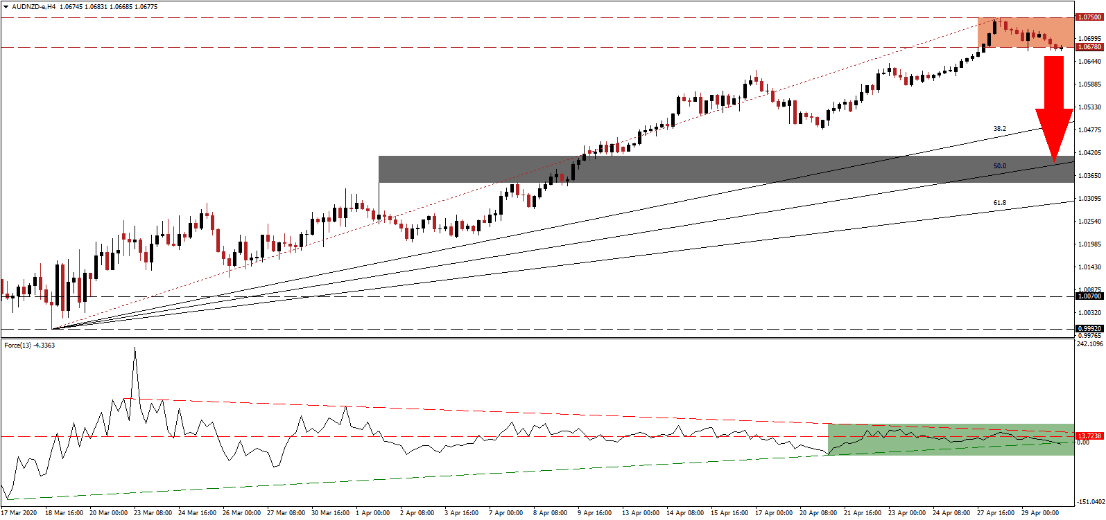 Australia’s and New Zealand’s Covid-19 response is being hailed by many in the international community. Both countries share other similarities like being major commodity exporters and their heavy reliance on China. Calls from Australia into inquiries of wet markets in China, where the virus is thought to have originated, outraged China, which voiced its concern via its ambassador. The diplomatic row could have a significant impact on the Australian economy as it attempts to position for recovery out of the first recession in thirty years. Bearish pressures have intensified in the AUD/NZD following an extensive price action reversal. This currency pair is vulnerable to a profit-taking sell-off.