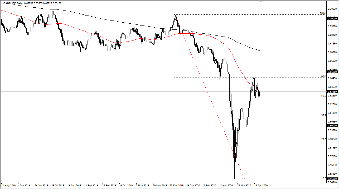 The Australian dollar rallied a bit during the trading session on Wednesday, reaching towards the 50 day EMA where there has been selling pressure. At this point, the market has rolled over just a bit and it looks to me as if the market is trying to rollover a bit. We are just above the 0.63 level, but at this point I think we are more than likely going to see sellers come in and punish the Australian dollar as there is no real demand out there when it comes to the global economy so it’s difficult to imagine that this will be sustainable. Granted, the Aussie had been in a nice uptrend, but it certainly seems as if this continues to be a “fade the rally” type of set up.