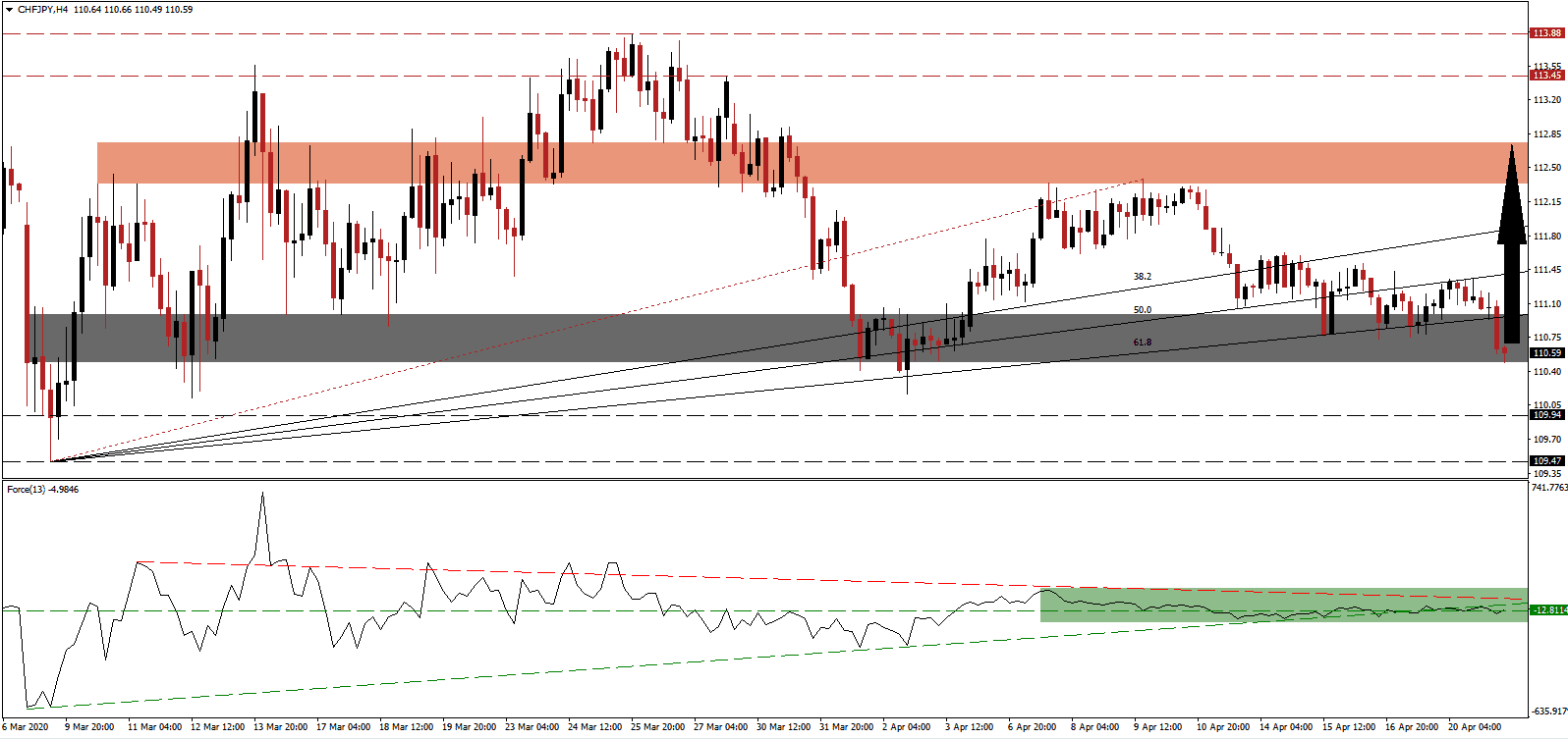 One essential development to monitor is the ascending 61.8 Fibonacci Retracement Fan Resistance Level, which is on the verge of exiting the short-term support zone. A double breakout will allow the Fibonacci Retracement Fan sequence to guide price action farther to the upside. The next resistance zone awaits the CHF/JPY between 112.33 and 112.76, as identified by the red rectangle. Volatility is likely to remain elevated with this currency pair restricted to its present trading range unless a significant fundamental catalyst emerges. You can learn more about a resistance zone here.